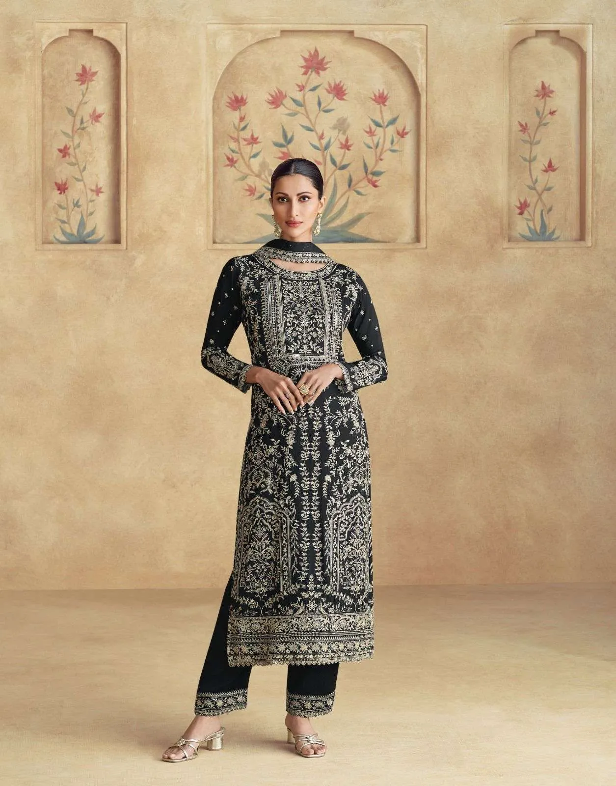 Top :- Premium Chinnon Silk with fully embroidery work