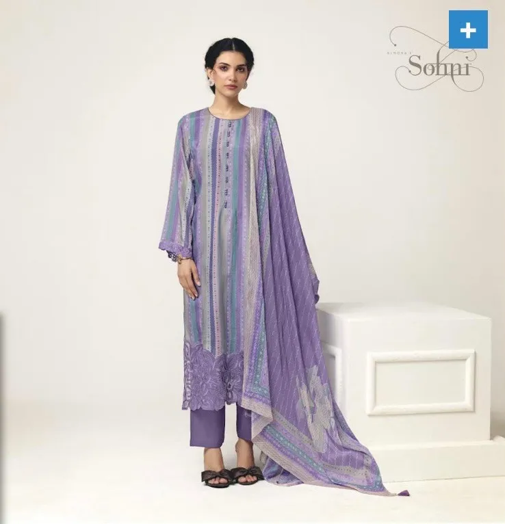 Pure maslin with digital print resham scallop organza embroidery, hemline and scallop border on sleeve